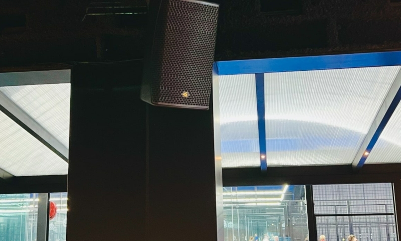 In de hal bij de padelbanen zijn eveneens twee AIR-C8 luidsprekers geplaatst, waardoor elke zone rondom de banen is voorzien van een consistente en functionele audio-ervaring.