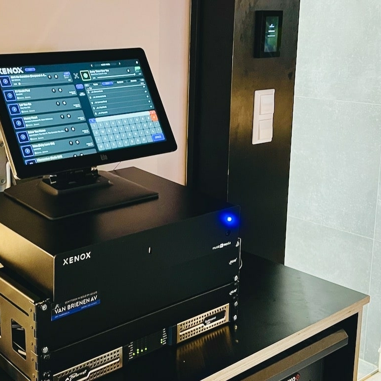 Achter de bar is bovendien een speciaal inprikpunt gerealiseerd voor externe apparatuur, zodat bij evenementen of DJ-avonden eenvoudig kan worden ingeplugd zonder concessies te doen aan geluidskwaliteit of gebruiksgemak.